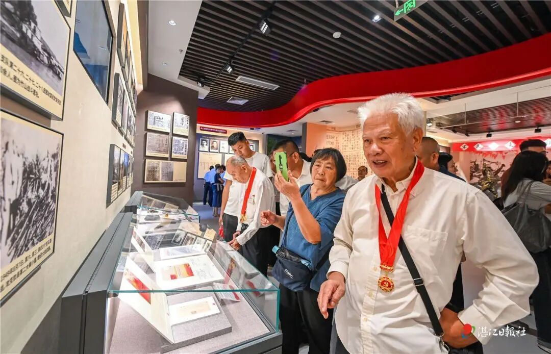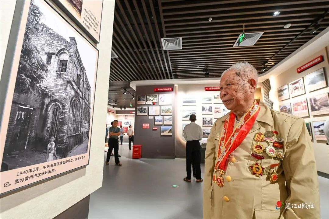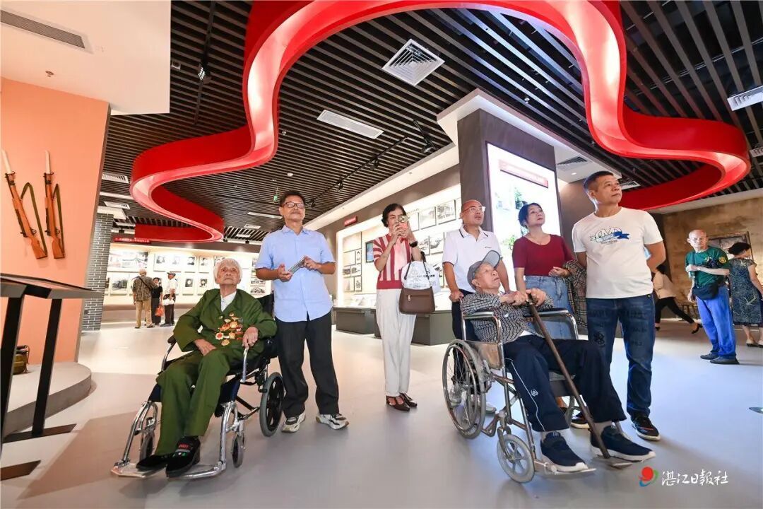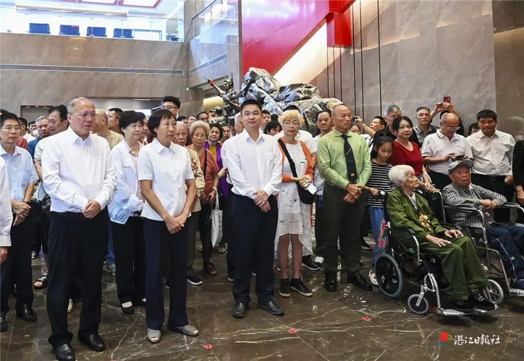 99岁的杨莲和98岁的张耀森,在家属陪同下从广西北海赶到湛江,坐在轮椅上出席开馆仪式,并观看了展览,讲起革命往事一度落泪。