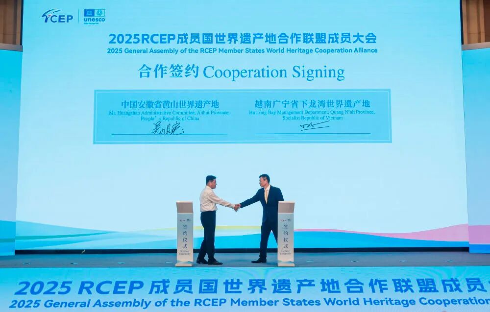新华社合肥10月17日电(记者郭晨、赵金正)17日,RCEP(《区域全面经济伙伴关系协定》)成员国世界遗产地合作联盟迎来首批合作成果——五项跨地区、跨机构间友好合作协议在安徽省黄山市正式签署。这标志着联盟推动区域内旅游发展与文明互鉴的作用正逐步显现。